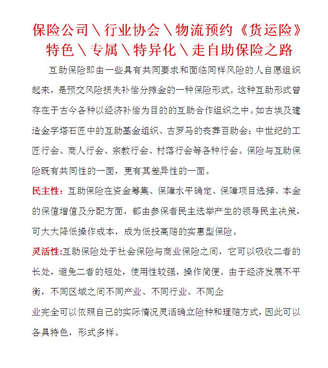 物流预约《货运险》走自助保险之路