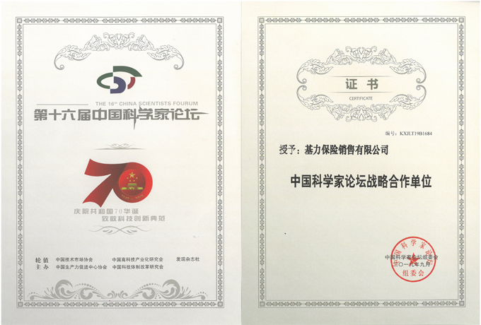 中国科学家论坛战略合作单位-证书